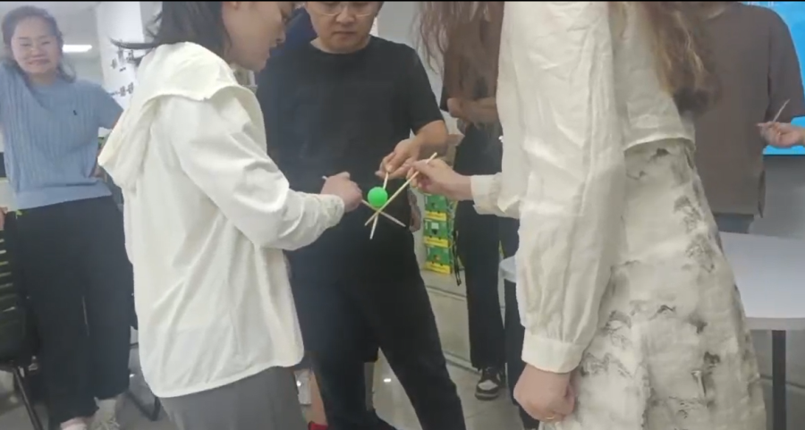 所谓一人成个、二人成从、三人成众,而众星捧月则大有可为,接下来这个筷子运乒乓球的游戏将完全体现铁三角的重要性。成功、失败就在一筷之差,就看你筷子角度把控的对不对了。
